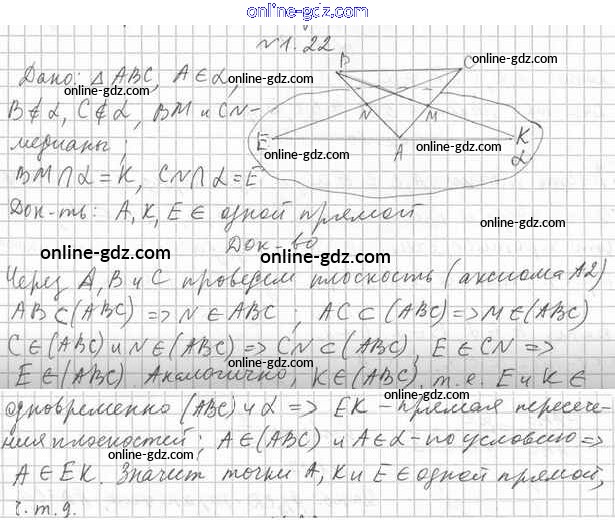 Готовые домашние задания по Геометрии за 10 класс Учебник Мерзляк, Номировский Алгоритм успеха Базовый уровень 2017 - §1. Основные понятия стереометрии. Аксиомы стереометрии 1.22