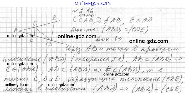 Готовые домашние задания по Геометрии за 10 класс Учебник Мерзляк, Номировский Алгоритм успеха Базовый уровень 2017 - §2. Следствия из аксиом стереометрии 2.16