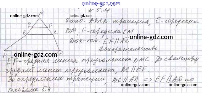 Готовые домашние задания по Геометрии за 10 класс Учебник Мерзляк, Номировский Алгоритм успеха Базовый уровень 2017 - §5. Параллельность прямой и плоскости 5.11