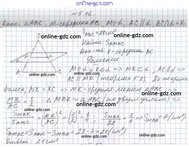 Готовые домашние задания по Геометрии за 10 класс Учебник Мерзляк, Номировский Алгоритм успеха Базовый уровень 2017 - §5. Параллельность прямой и плоскости 5.16