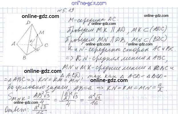 Готовые домашние задания по Геометрии за 10 класс Учебник Мерзляк, Номировский Алгоритм успеха Базовый уровень 2017 - §5. Параллельность прямой и плоскости 5.19