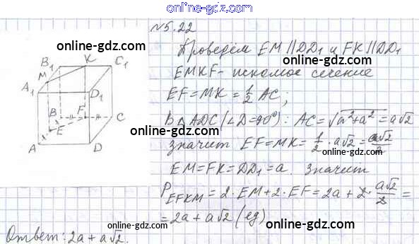 Готовые домашние задания по Геометрии за 10 класс Учебник Мерзляк, Номировский Алгоритм успеха Базовый уровень 2017 - §5. Параллельность прямой и плоскости 5.22
