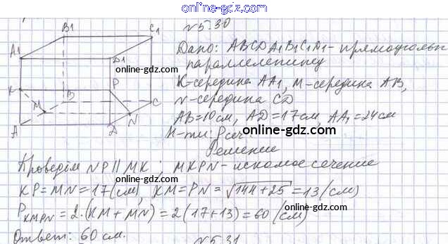Готовые домашние задания по Геометрии за 10 класс Учебник Мерзляк, Номировский Алгоритм успеха Базовый уровень 2017 - §5. Параллельность прямой и плоскости 5.30