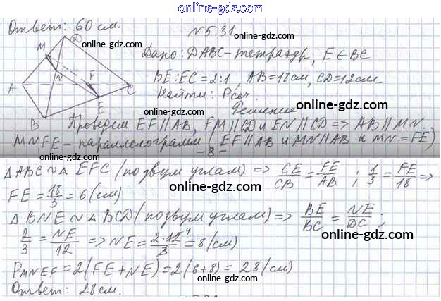 Готовые домашние задания по Геометрии за 10 класс Учебник Мерзляк, Номировский Алгоритм успеха Базовый уровень 2017 - §5. Параллельность прямой и плоскости 5.31