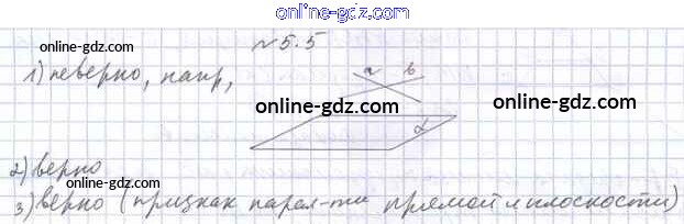 Готовые домашние задания по Геометрии за 10 класс Учебник Мерзляк, Номировский Алгоритм успеха Базовый уровень 2017 - §5. Параллельность прямой и плоскости 5.5