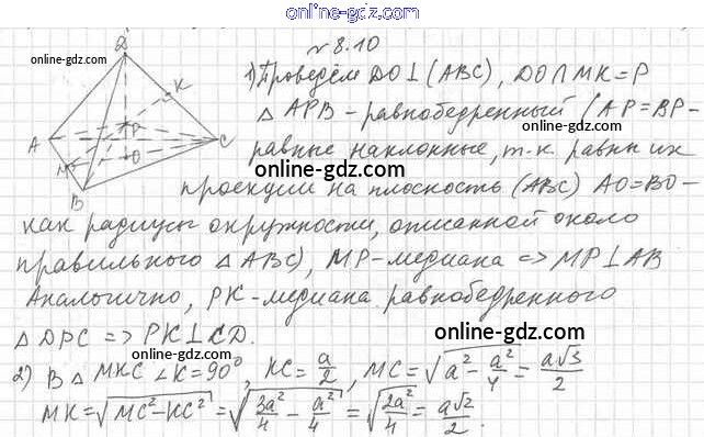 Готовые домашние задания по Геометрии за 10 класс Учебник Мерзляк, Номировский Алгоритм успеха Базовый уровень 2017 - §8. Угол между прямыми в пространстве 8.10