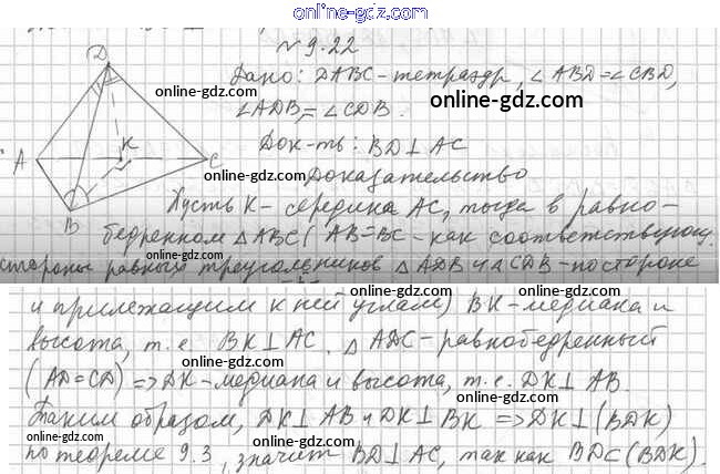 Готовые домашние задания по Геометрии за 10 класс Учебник Мерзляк, Номировский Алгоритм успеха Базовый уровень 2017 - §9. Перпендикулярность прямой и плоскости 9.22