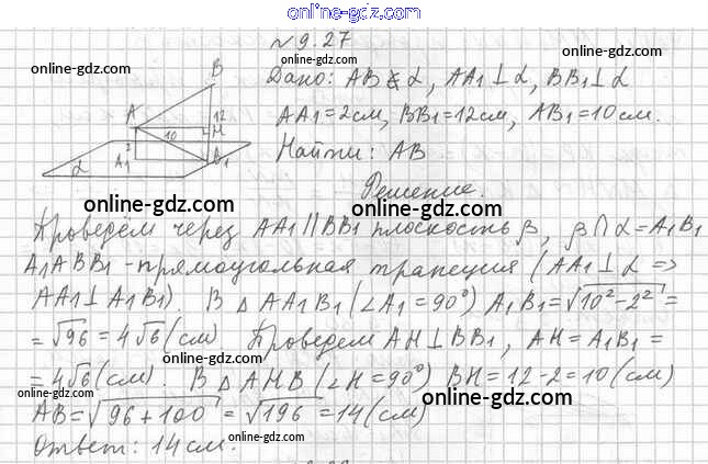 Готовые домашние задания по Геометрии за 10 класс Учебник Мерзляк, Номировский Алгоритм успеха Базовый уровень 2017 - §9. Перпендикулярность прямой и плоскости 9.27
