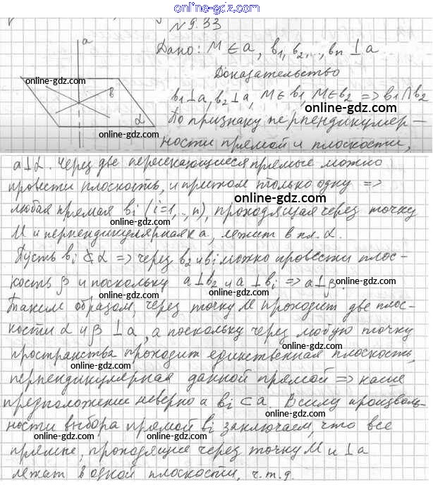 Готовые домашние задания по Геометрии за 10 класс Учебник Мерзляк, Номировский Алгоритм успеха Базовый уровень 2017 - §9. Перпендикулярность прямой и плоскости 9.33