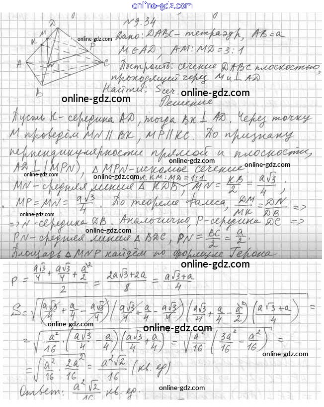 Готовые домашние задания по Геометрии за 10 класс Учебник Мерзляк, Номировский Алгоритм успеха Базовый уровень 2017 - §9. Перпендикулярность прямой и плоскости 9.34
