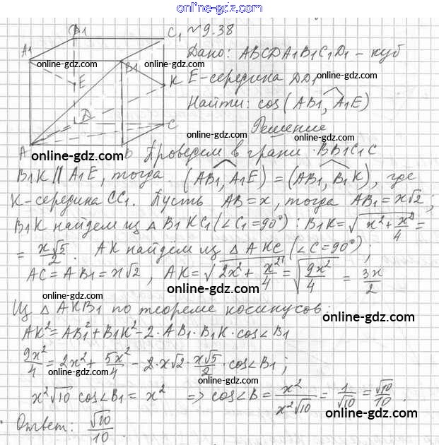 Готовые домашние задания по Геометрии за 10 класс Учебник Мерзляк, Номировский Алгоритм успеха Базовый уровень 2017 - §9. Перпендикулярность прямой и плоскости 9.38