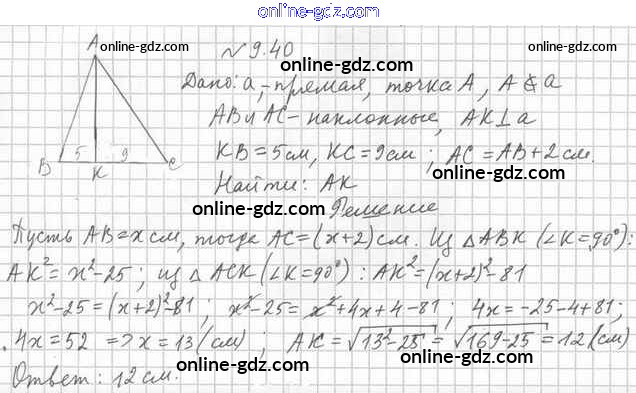 Готовые домашние задания по Геометрии за 10 класс Учебник Мерзляк, Номировский Алгоритм успеха Базовый уровень 2017 - §9. Перпендикулярность прямой и плоскости 9.40
