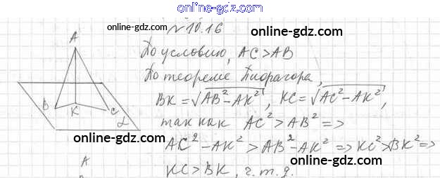 Готовые домашние задания по Геометрии за 10 класс Учебник Мерзляк, Номировский Алгоритм успеха Базовый уровень 2017 - §10. Перпендикуляр и наклонная 10.16