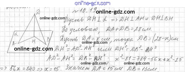 Готовые домашние задания по Геометрии за 10 класс Учебник Мерзляк, Номировский Алгоритм успеха Базовый уровень 2017 - §10. Перпендикуляр и наклонная 10.19