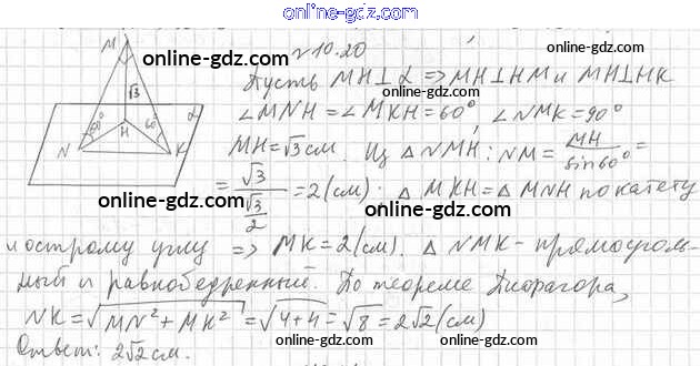 Готовые домашние задания по Геометрии за 10 класс Учебник Мерзляк, Номировский Алгоритм успеха Базовый уровень 2017 - §10. Перпендикуляр и наклонная 10.20