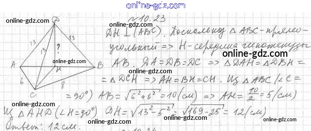 Готовые домашние задания по Геометрии за 10 класс Учебник Мерзляк, Номировский Алгоритм успеха Базовый уровень 2017 - §10. Перпендикуляр и наклонная 10.23