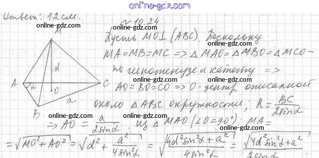 Готовые домашние задания по Геометрии за 10 класс Учебник Мерзляк, Номировский Алгоритм успеха Базовый уровень 2017 - §10. Перпендикуляр и наклонная 10.24