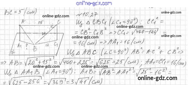 Готовые домашние задания по Геометрии за 10 класс Учебник Мерзляк, Номировский Алгоритм успеха Базовый уровень 2017 - §10. Перпендикуляр и наклонная 10.27