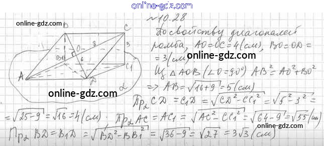 Готовые домашние задания по Геометрии за 10 класс Учебник Мерзляк, Номировский Алгоритм успеха Базовый уровень 2017 - §10. Перпендикуляр и наклонная 10.28