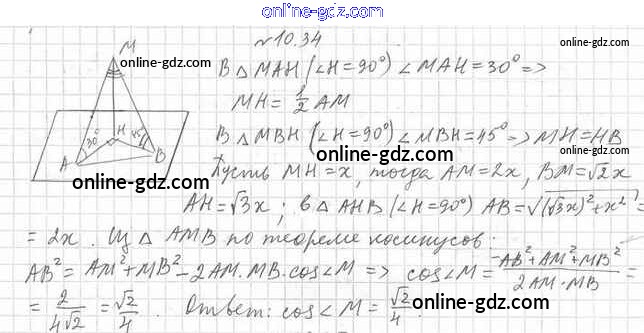 Готовые домашние задания по Геометрии за 10 класс Учебник Мерзляк, Номировский Алгоритм успеха Базовый уровень 2017 - §10. Перпендикуляр и наклонная 10.34