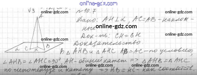 Готовые домашние задания по Геометрии за 10 класс Учебник Мерзляк, Номировский Алгоритм успеха Базовый уровень 2017 - §10. Перпендикуляр и наклонная 10.7