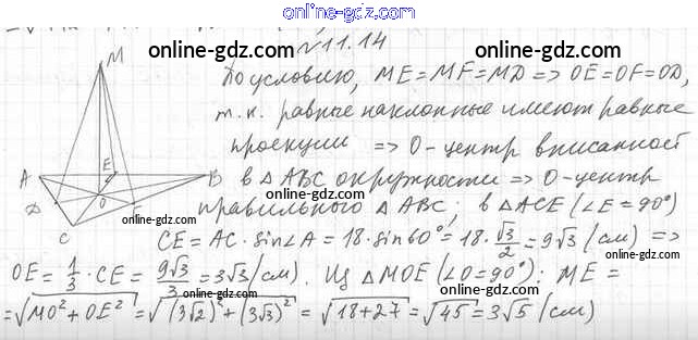 Готовые домашние задания по Геометрии за 10 класс Учебник Мерзляк, Номировский Алгоритм успеха Базовый уровень 2017 - §11. Теорема о трёх перпендикулярах 11.14