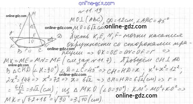 Готовые домашние задания по Геометрии за 10 класс Учебник Мерзляк, Номировский Алгоритм успеха Базовый уровень 2017 - §11. Теорема о трёх перпендикулярах 11.19