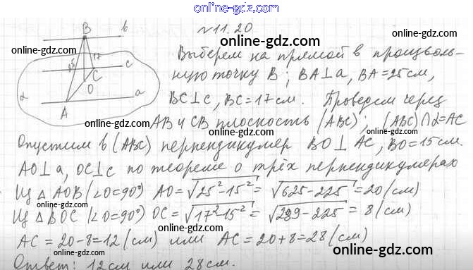 Готовые домашние задания по Геометрии за 10 класс Учебник Мерзляк, Номировский Алгоритм успеха Базовый уровень 2017 - §11. Теорема о трёх перпендикулярах 11.20