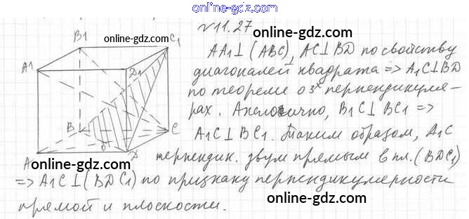 Готовые домашние задания по Геометрии за 10 класс Учебник Мерзляк, Номировский Алгоритм успеха Базовый уровень 2017 - §11. Теорема о трёх перпендикулярах 11.27