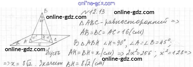 Готовые домашние задания по Геометрии за 10 класс Учебник Мерзляк, Номировский Алгоритм успеха Базовый уровень 2017 - §12. Угол между прямой и плоскостью 12.13