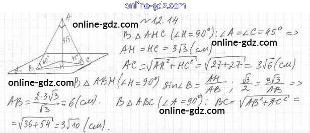 Готовые домашние задания по Геометрии за 10 класс Учебник Мерзляк, Номировский Алгоритм успеха Базовый уровень 2017 - §12. Угол между прямой и плоскостью 12.14