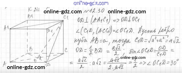 Готовые домашние задания по Геометрии за 10 класс Учебник Мерзляк, Номировский Алгоритм успеха Базовый уровень 2017 - §12. Угол между прямой и плоскостью 12.30
