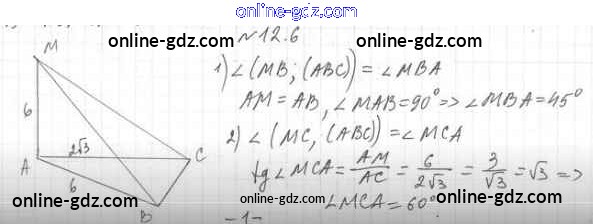 Готовые домашние задания по Геометрии за 10 класс Учебник Мерзляк, Номировский Алгоритм успеха Базовый уровень 2017 - §12. Угол между прямой и плоскостью 12.6