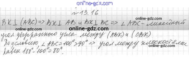 Готовые домашние задания по Геометрии за 10 класс Учебник Мерзляк, Номировский Алгоритм успеха Базовый уровень 2017 - §13. Двугранный угол. Угол между плоскостями 13.16