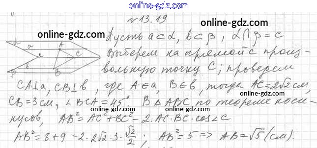 Готовые домашние задания по Геометрии за 10 класс Учебник Мерзляк, Номировский Алгоритм успеха Базовый уровень 2017 - §13. Двугранный угол. Угол между плоскостями 13.19