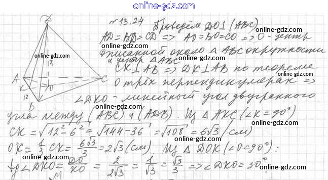 Готовые домашние задания по Геометрии за 10 класс Учебник Мерзляк, Номировский Алгоритм успеха Базовый уровень 2017 - §13. Двугранный угол. Угол между плоскостями 13.24