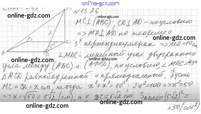 Готовые домашние задания по Геометрии за 10 класс Учебник Мерзляк, Номировский Алгоритм успеха Базовый уровень 2017 - §13. Двугранный угол. Угол между плоскостями 13.26