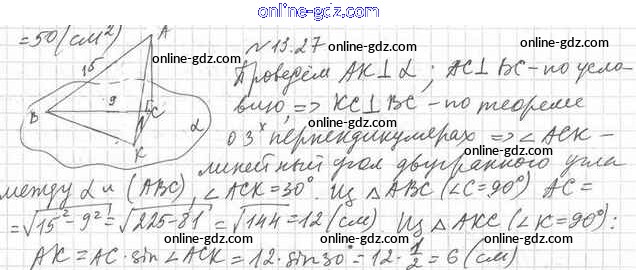 Готовые домашние задания по Геометрии за 10 класс Учебник Мерзляк, Номировский Алгоритм успеха Базовый уровень 2017 - §13. Двугранный угол. Угол между плоскостями 13.27