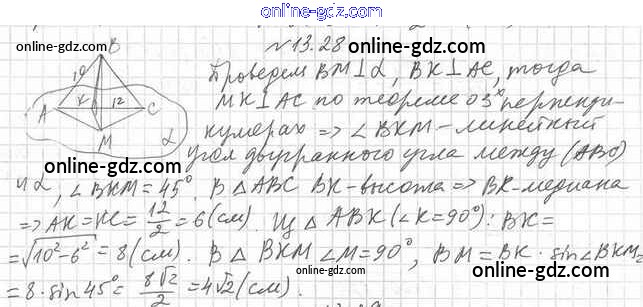 Готовые домашние задания по Геометрии за 10 класс Учебник Мерзляк, Номировский Алгоритм успеха Базовый уровень 2017 - §13. Двугранный угол. Угол между плоскостями 13.28