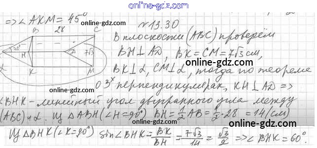 Готовые домашние задания по Геометрии за 10 класс Учебник Мерзляк, Номировский Алгоритм успеха Базовый уровень 2017 - §13. Двугранный угол. Угол между плоскостями 13.30