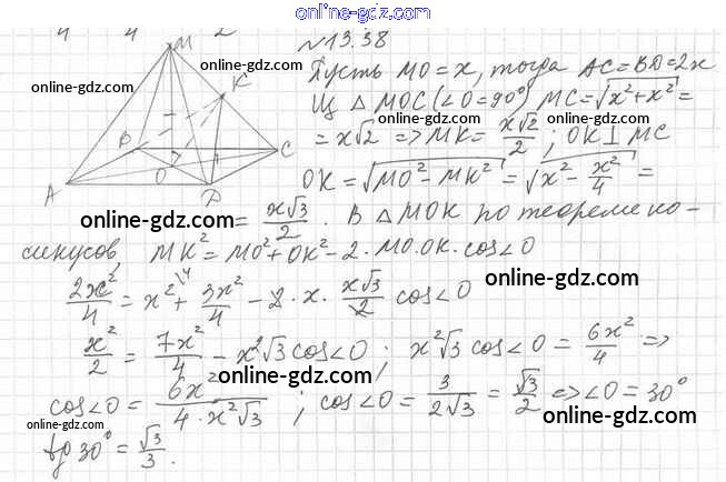 Готовые домашние задания по Геометрии за 10 класс Учебник Мерзляк, Номировский Алгоритм успеха Базовый уровень 2017 - §13. Двугранный угол. Угол между плоскостями 13.38