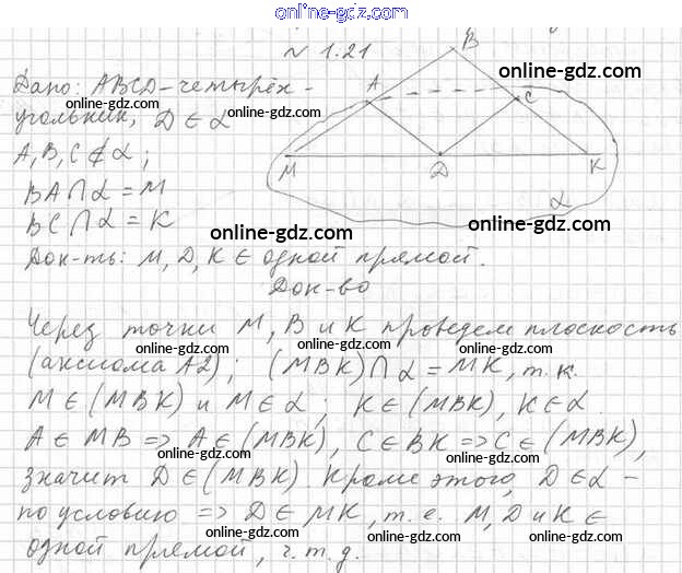 Готовые домашние задания по Геометрии за 10 класс Учебник Мерзляк, Номировский Алгоритм успеха Углубленный уровень 2021 - §1. Основные понятия стереометрии. Аксиомы стереометрии 1.21