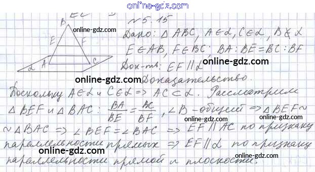 Готовые домашние задания по Геометрии за 10 класс Учебник Мерзляк, Номировский Алгоритм успеха Углубленный уровень 2021 - §5. Параллельность прямой и плоскости 5.15