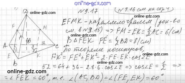 Готовые домашние задания по Геометрии за 10 класс Учебник Мерзляк, Номировский Алгоритм успеха Углубленный уровень 2021 - §9. Угол между прямыми в пространстве 9.17