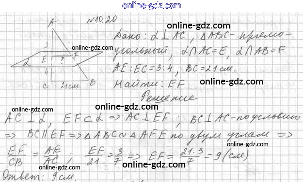 Готовые домашние задания по Геометрии за 10 класс Учебник Мерзляк, Номировский Алгоритм успеха Углубленный уровень 2021 - §10. Перпендикулярность прямой и плоскости 10.20