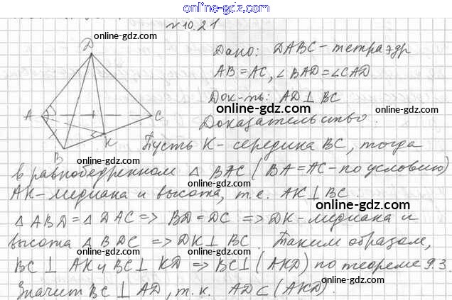 Готовые домашние задания по Геометрии за 10 класс Учебник Мерзляк, Номировский Алгоритм успеха Углубленный уровень 2021 - §10. Перпендикулярность прямой и плоскости 10.21