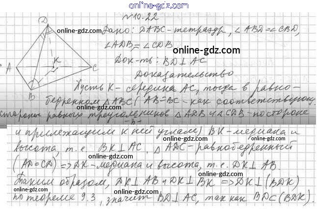 Готовые домашние задания по Геометрии за 10 класс Учебник Мерзляк, Номировский Алгоритм успеха Углубленный уровень 2021 - §10. Перпендикулярность прямой и плоскости 10.22