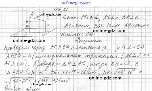 Готовые домашние задания по Геометрии за 10 класс Учебник Мерзляк, Номировский Алгоритм успеха Углубленный уровень 2021 - §10. Перпендикулярность прямой и плоскости 10.26