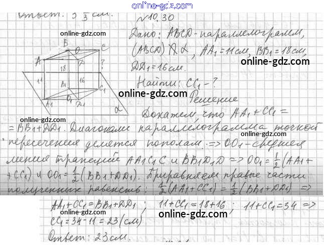 Готовые домашние задания по Геометрии за 10 класс Учебник Мерзляк, Номировский Алгоритм успеха Углубленный уровень 2021 - §10. Перпендикулярность прямой и плоскости 10.30
