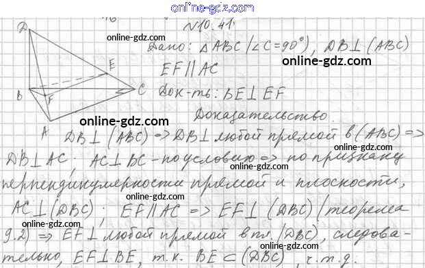 Готовые домашние задания по Геометрии за 10 класс Учебник Мерзляк, Номировский Алгоритм успеха Углубленный уровень 2021 - §10. Перпендикулярность прямой и плоскости 10.41